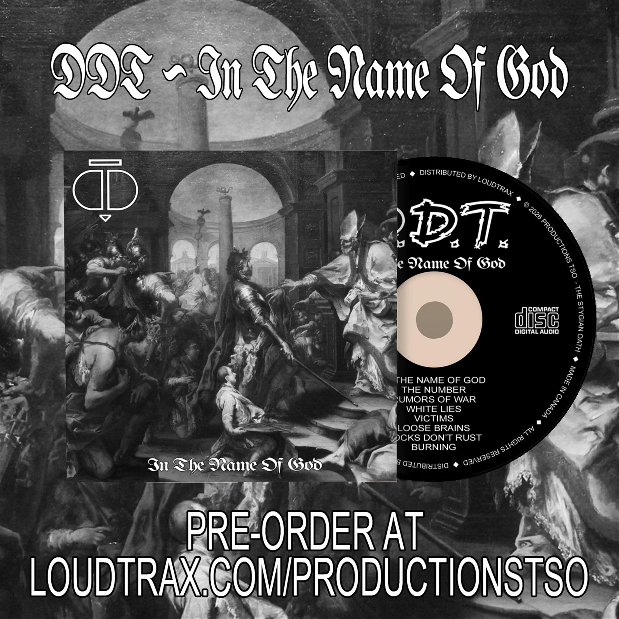 'In The Name Of God was recorded and mixed in Sherbrooke on a Fostex 14 inch 8 track recorder inside our rehearsal studio. We recorded 10 additional songs that did not end up on this demo, because we felt they were going in a different direction. Some of them were released on the following `Victims` demo tape. Following the lack of interest from record labels, and the fact that the EP and touring was out of breath since its release, Denis and SYD parted with us to pursue other ventures. We auditioned drummers as we realized that we could also function as a power trio with a lead singer. We hired Richard Pérusse, a DDT fan with a lot of drumming experience, who loved heavy metal and was a connoisseur of the genre. We later started the club gigs once again to polish our style and evolution into the genre. This demo was a prelude to the `Victims' demo recorded months later".
