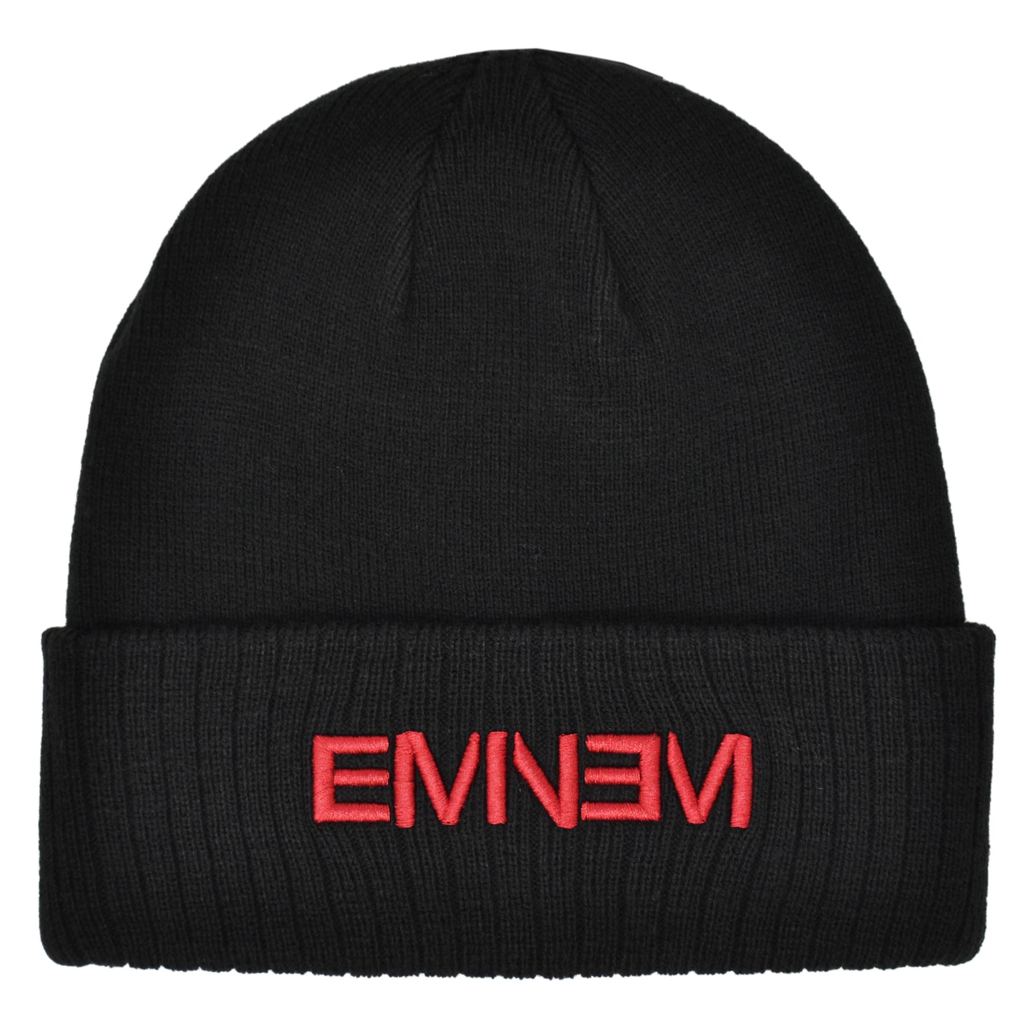 This beanie features the Eminem logo in cardinal red. Eminem has been open about his drug addiction and his reluctance to tour due to its triggering nature.