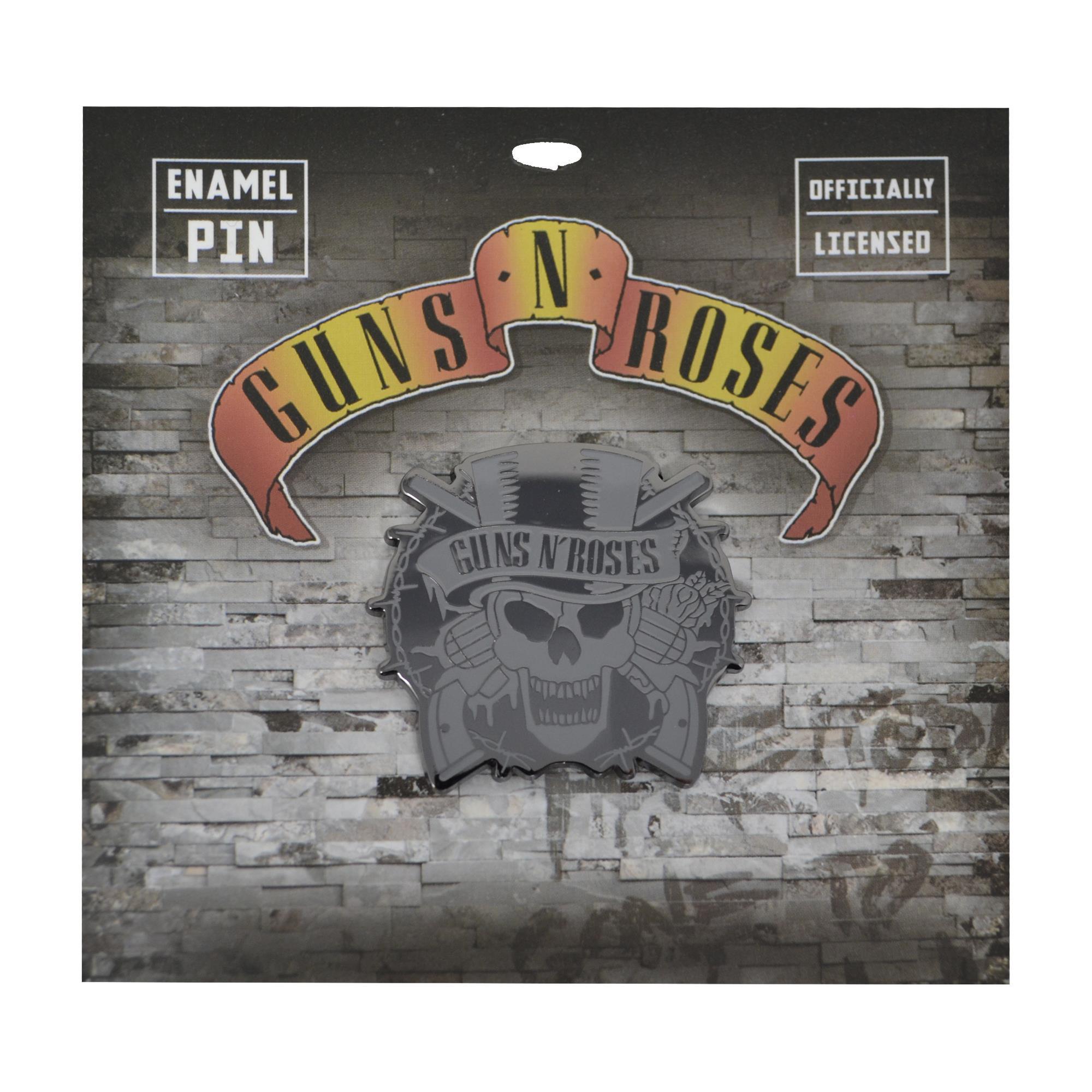 An enamel pin with the skull hat logo, which was reportedly a caricature hand-drawn by the guitarist Slash!